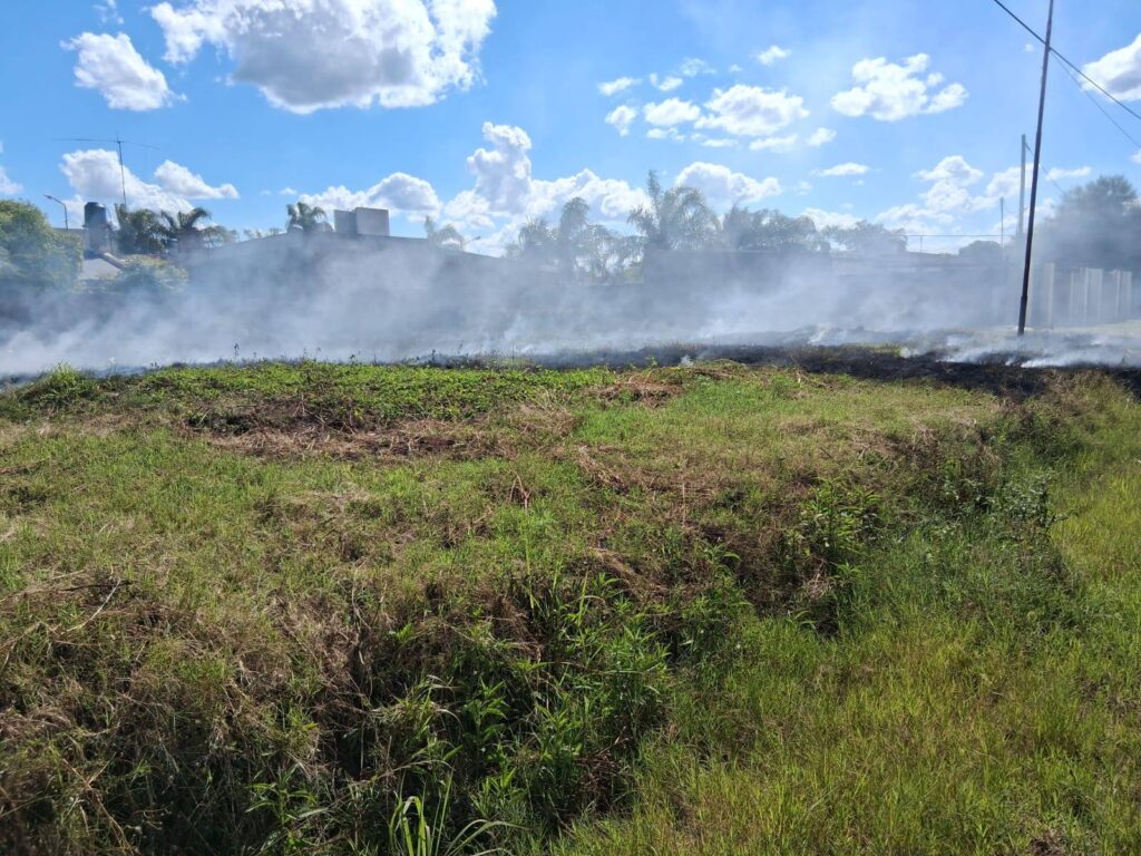 Al llegar al lugar mencionado los bomberos constataron que se trataba del incendio de un terreno con un importante colchón de pasto y basura de elementos plásticos y neumáticos por lo que se trabajó con mochilas hidrantes y herramientas de zapa para desarmar el colchón de pasto. Tras el arduo trabajo realizado el humo seguía siendo intenso debido a los materiales que se habían incinerado.