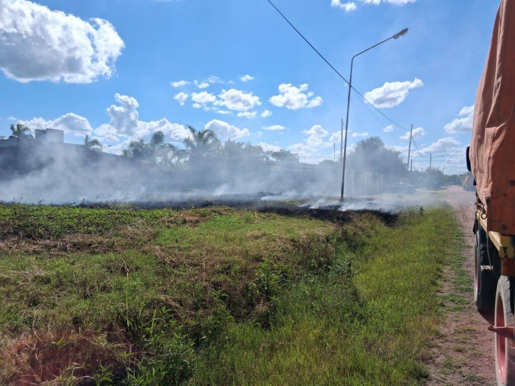 A las 15,16 horas de este domingo partió el móvil 09 con dos bomberos hacia las calles Soberanía Nacional y Fuerte Esperanza por una alerta recibida en la guardia que indicaba que se estaba produciendo un incendio de pastizales.